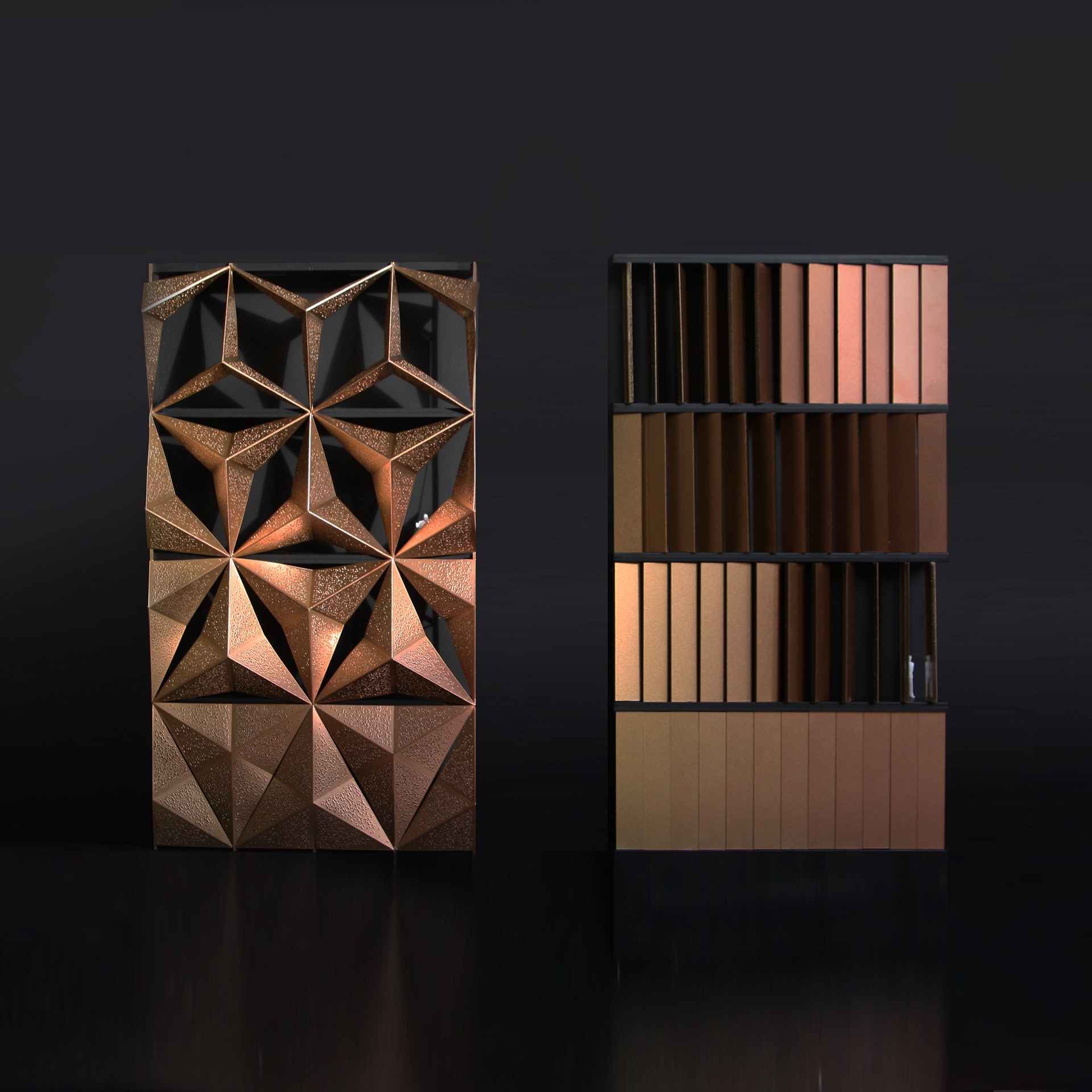 Matter Makers made a design for two facades working on 1 kinetic sunshading system. Airshade Technologies B.V. is a patented shading system for buildings that needs no electricity, motors or sensors. It uses air expansion and the heat of the sun to operate the shades. For Airshade we envisioned the possible use of this great innovation that does not use any wires or cables but purely works on the heat on the air. In the model you can see different opening capacities of the shading system.