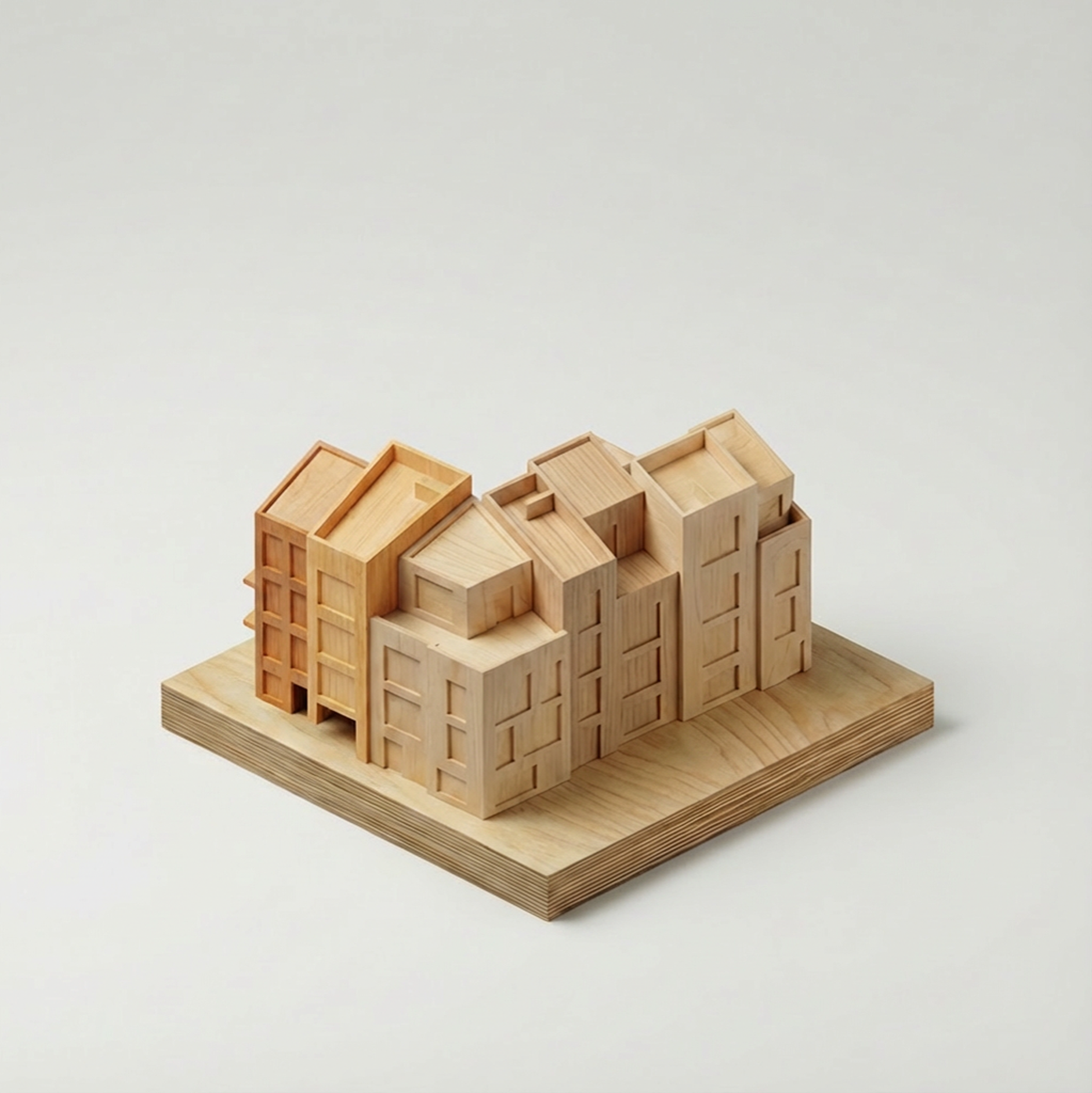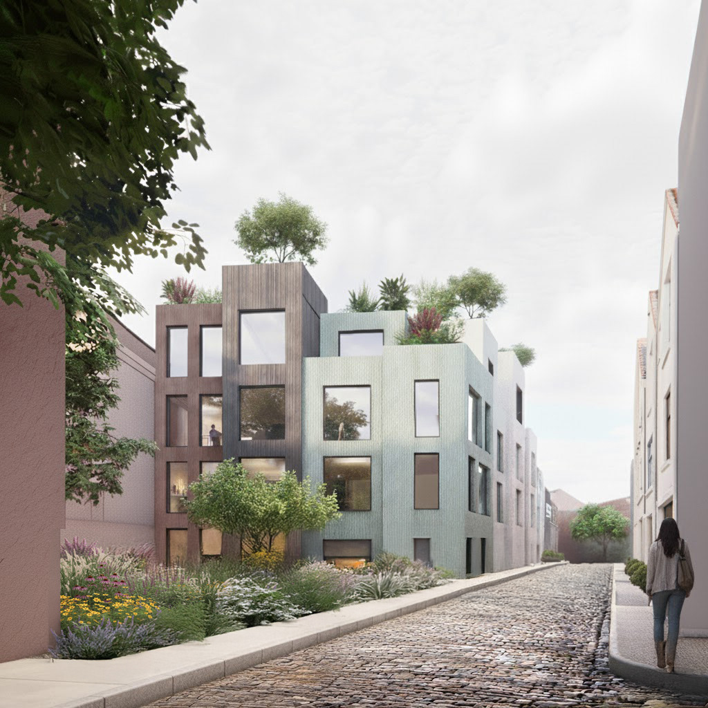 The mix of color tones reflects the village’s historic palette, while subtle changes in the building’s form evoke the character of small houses. This approach ensures the development integrates with its surroundings while optimizing space.